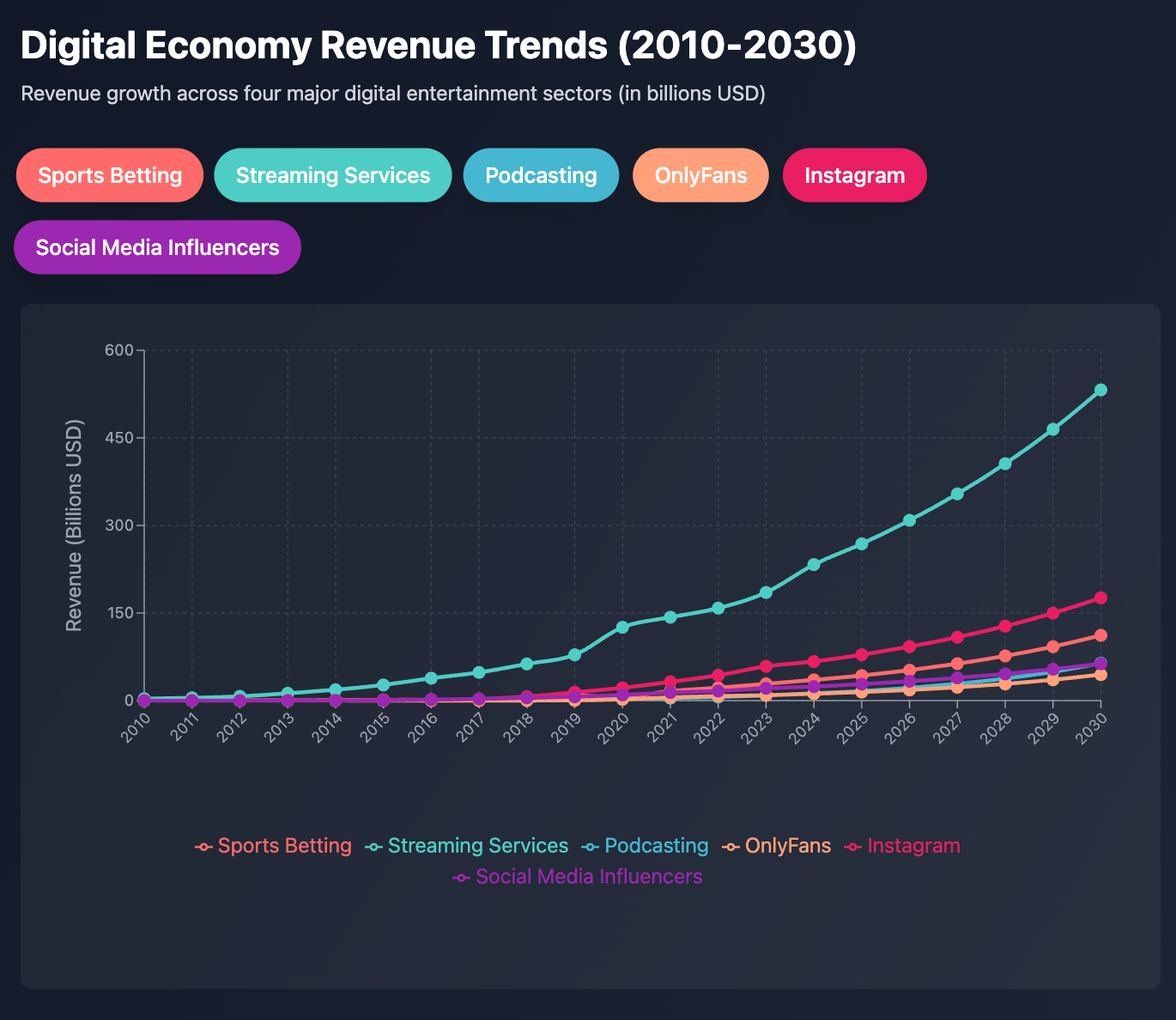 As AI and automation concentrate wealth and value, most conventional work loses both purpose and status as the average worker gets displaced. People are left with a choice: create or speculate. Platforms like OnlyFans, YouTube, Twitch, podcasts, and blogs let you invest your time, creativity, and attention to make money. The upside can be transformative, while the downside is usually just the hours you put in. Seems like a no-brainer to me.